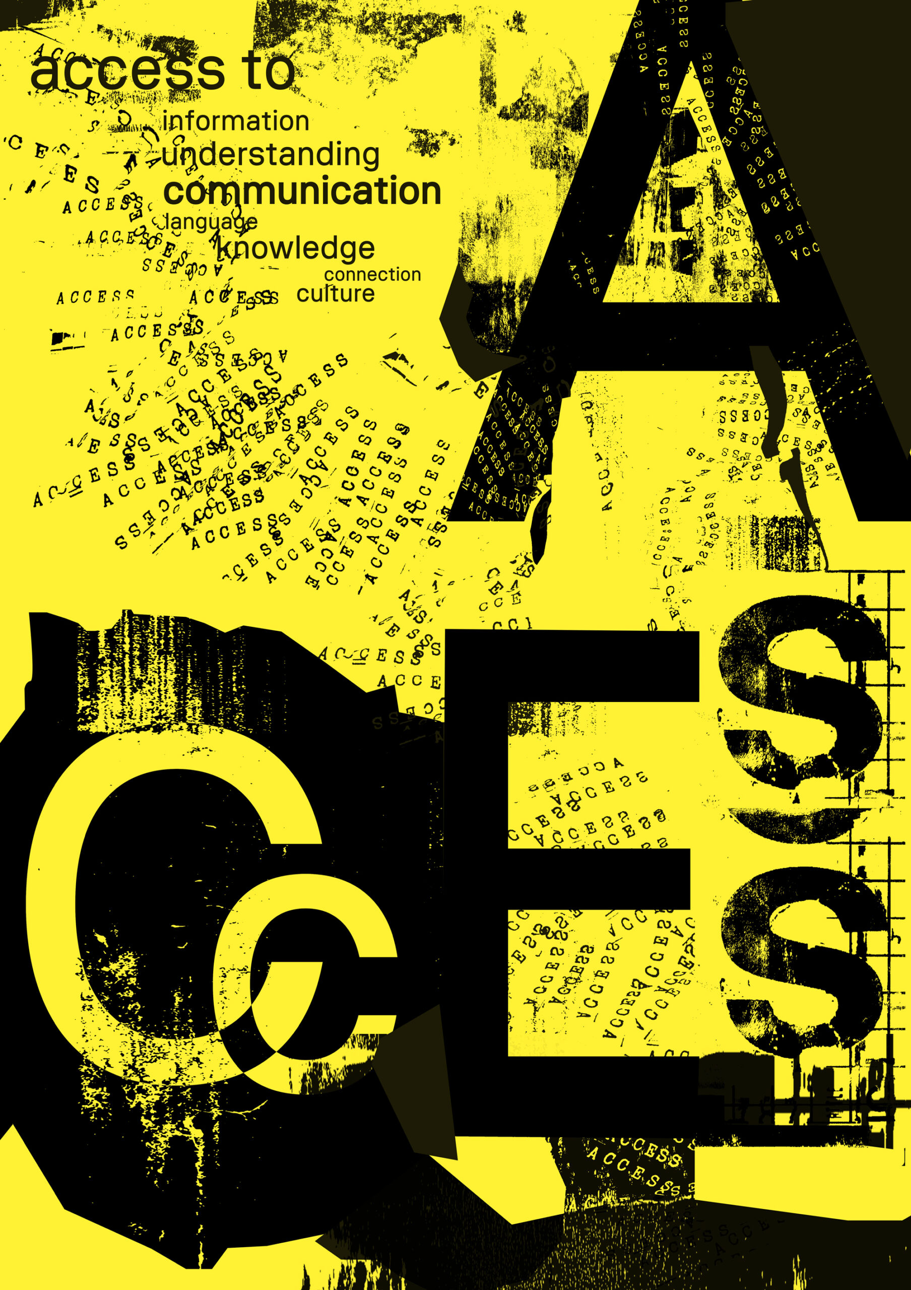 Analoges, grafisch-typografisches Plakat zum Thema „Zusammenarbeit“, das als freie Arbeit ohne werbliche Funktion eine spannende Komposition aus Formen, Rhythmen oder Bildern erzeugt.