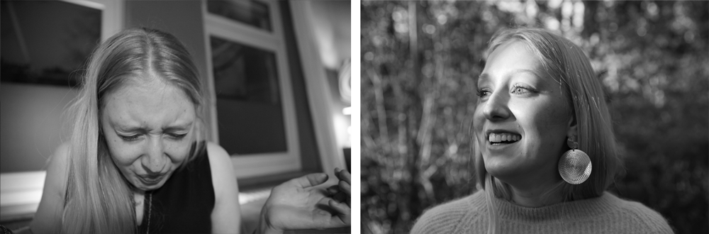 Mehrwöchige Schwarz-Weiß-Porträtstudie derselben Person, mit Fokus auf echte Emotionen.