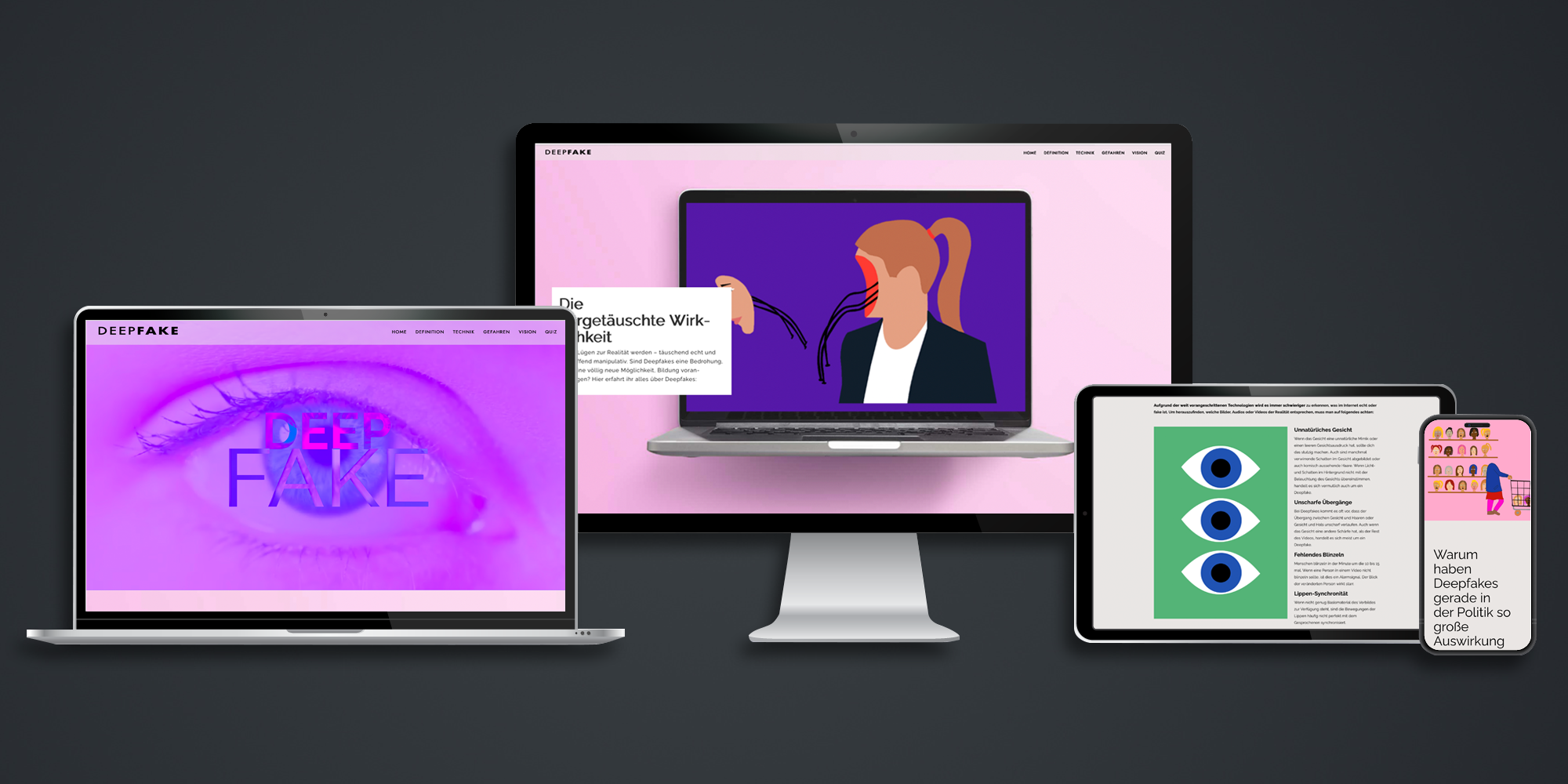 Entwicklung einer interaktiven Aufklärungswebseite zum Thema Deepfakes, die durch Definitionen, Technik-Analysen und Quiz-Elemente die Gefahren und Chancen KI-generierter Medien für den Medienabend der Heinrich-Hertz-Schule visualisiert.